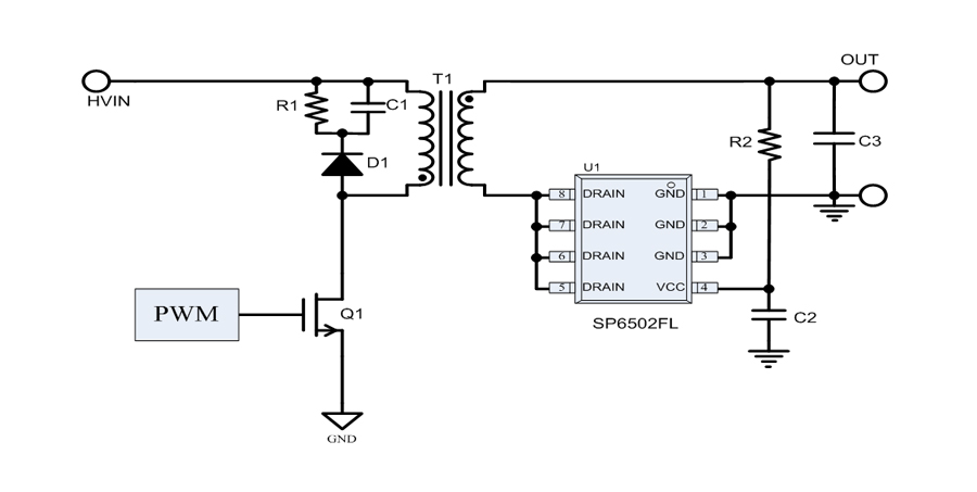 SP6502FL是一顆應用于隔離反激電源系統的次級同步整流芯片。通過模擬次級肖特基整流二極管的工作并以極低的導通電阻來減小損耗。SP6502FL可以工作在斷續模式(DCM)和準諧振模式(QR)。使用先進的消隱技術使得芯片在各種工作模式下可以穩定可靠地工作。